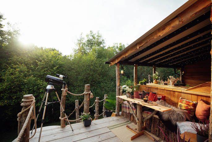 An enchanting space that feels like it was dreamt up in a child’s imagination, Ursabear in Devon has hairy bears, Icelandic trolls, sheepskin rugs and a sky full of stars above. On the bookshelves you’ll find stargazing guides and there’s a giant telescope to get you started on your journey through the cosmos.