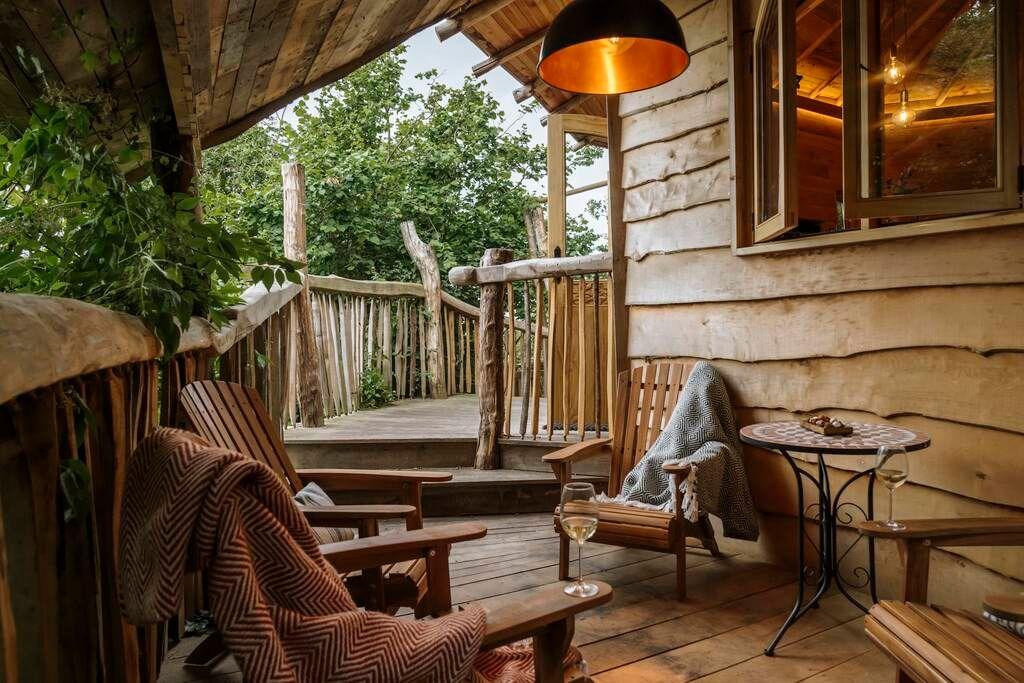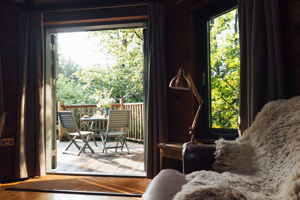 The Lodge Treehouse is a retreat for those who love their home comforts. Inside, there’s a spacious living area and a waterfall shower en suite, but the real showstopper is outside.