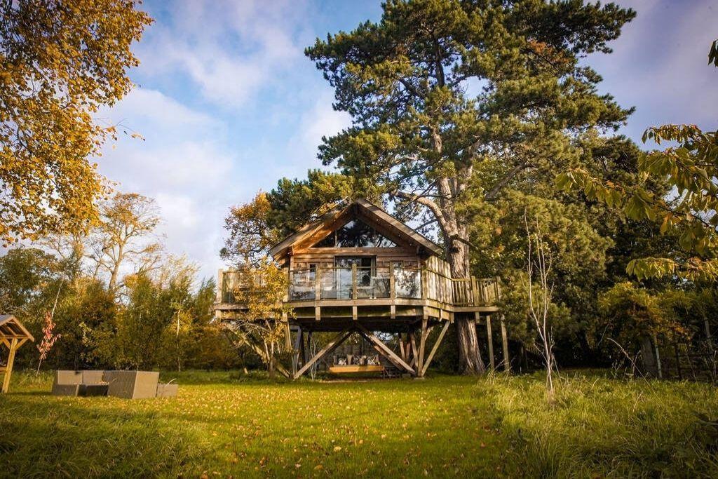 Glamping grandeur awaits at Orchard Treehouse in Worcestershire, wrapped stylishly around a magnificent Cypriot pine tree in the grounds of a medieval Manor house. Inside, the ceilings soar and, most impressively, there are two bathrooms. Which frankly, for a treehouse, is just showing off. There are secret cabin beds tucked into the walls, sure to excite children and fully grown adults who still remember the joy of making a bed into a fort.