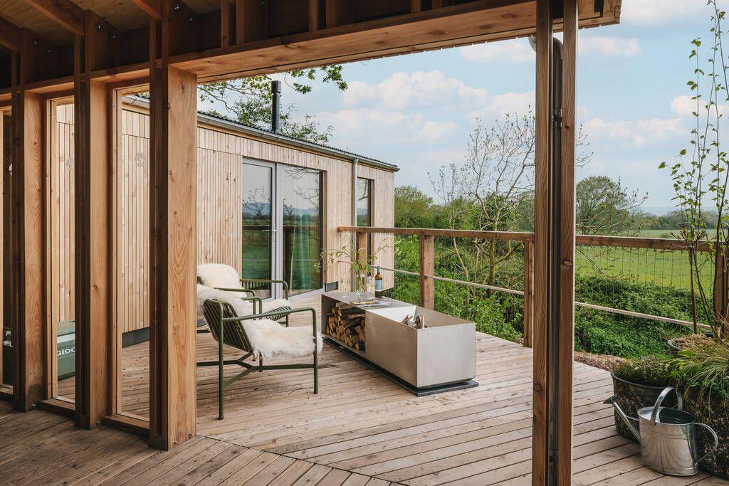 A secret spiral staircase leads to a mezzanine with a bath positioned under the eaves, set up perfectly for watching the sunset over the Malvern Hills. Outside on the deck, the private hot tub has uninterrupted views of the rolling Cotswolds beyond. It’s impossible not to slow down here and fall into the rhythm of the countryside. You’re on the edge of the lovely village of Little Comberton with a network of footpaths, a 17-mile cycle route and country pubs close by.