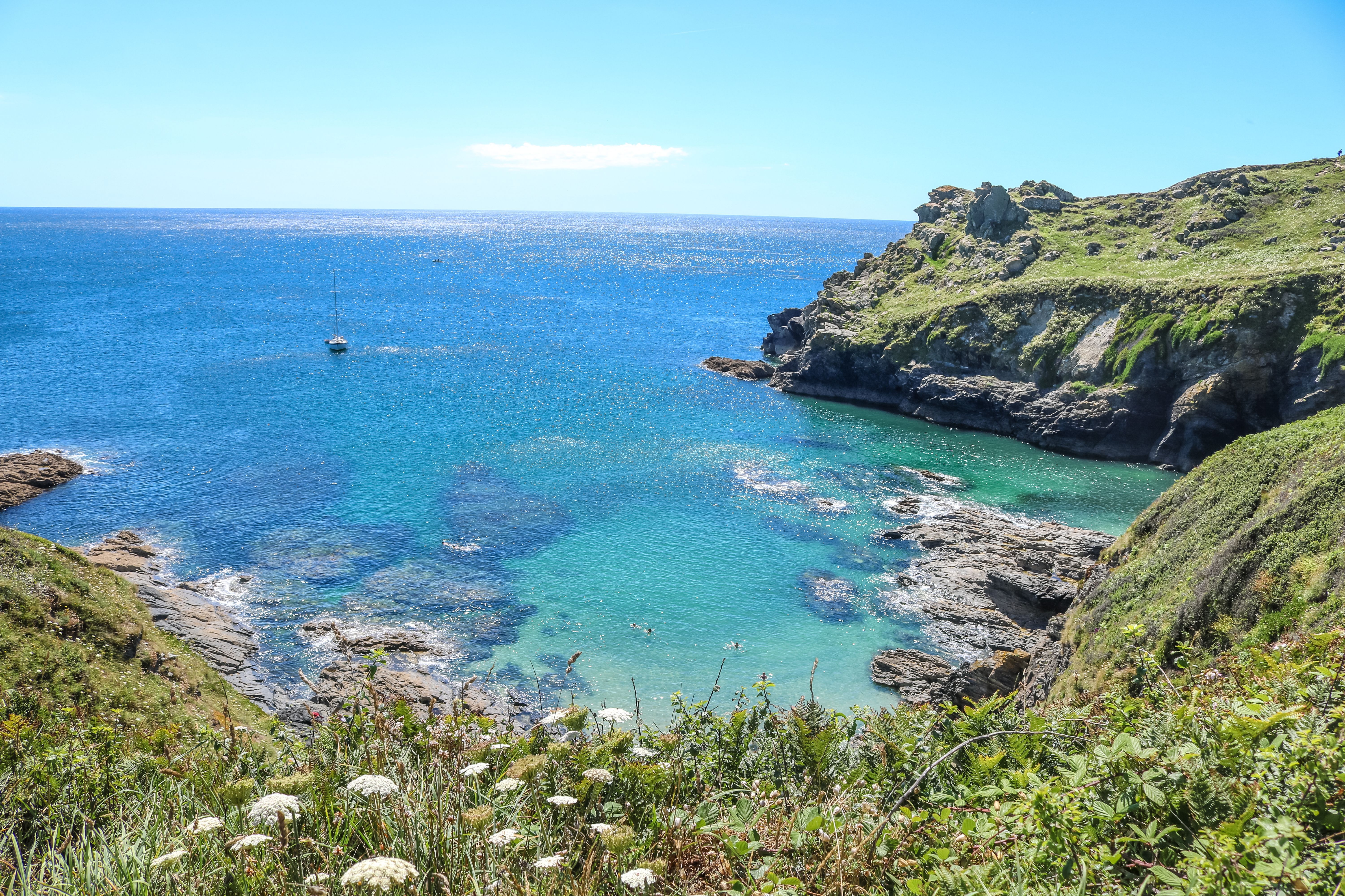 Walk around this notorious stretch of smugglers coastline, with a series of beautiful coves with clear turquoise waters. The walk starts at popular Perran Sands where you can enjoy your first dip of the day before setting off along the coast path towards Trevean Cove. The cove can be accessed down a gully that was once a slipway used by fishermen to haul their boats onto shore. While you can swim from the beach, it’s much more fun to explore the rocky outcrops off to the left, with pools and gullies that you can swim in at low tide.