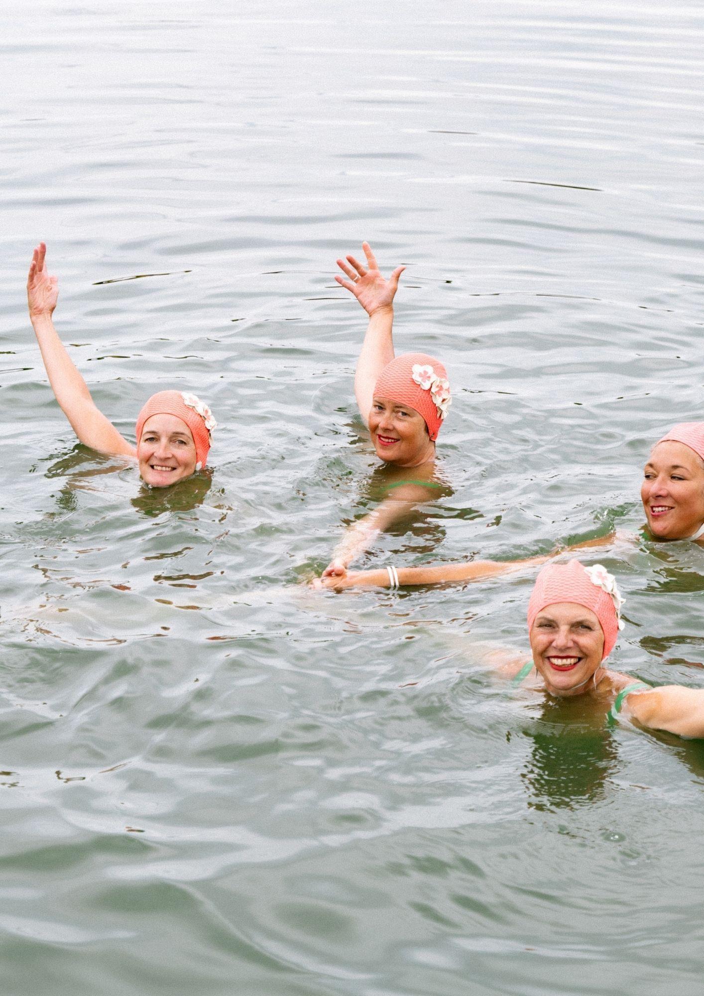 Jo Penney, a competitive artistic swimmer herself, couldn’t resist the chance to train the group. She’s encouraging them to work towards official synchronised swimming grades and uses underwater cameras to analyse their technique. It’s been something of a revelation. “None of us had formal training in this before, we’ve just been winging it. There’s this thing called egg-beating, a fundamental skill in synchro, where you use circular kicks to keep your height in the water without bobbing up and down. Turns out that for the last few years one of my legs has been going in completely the wrong direction.”