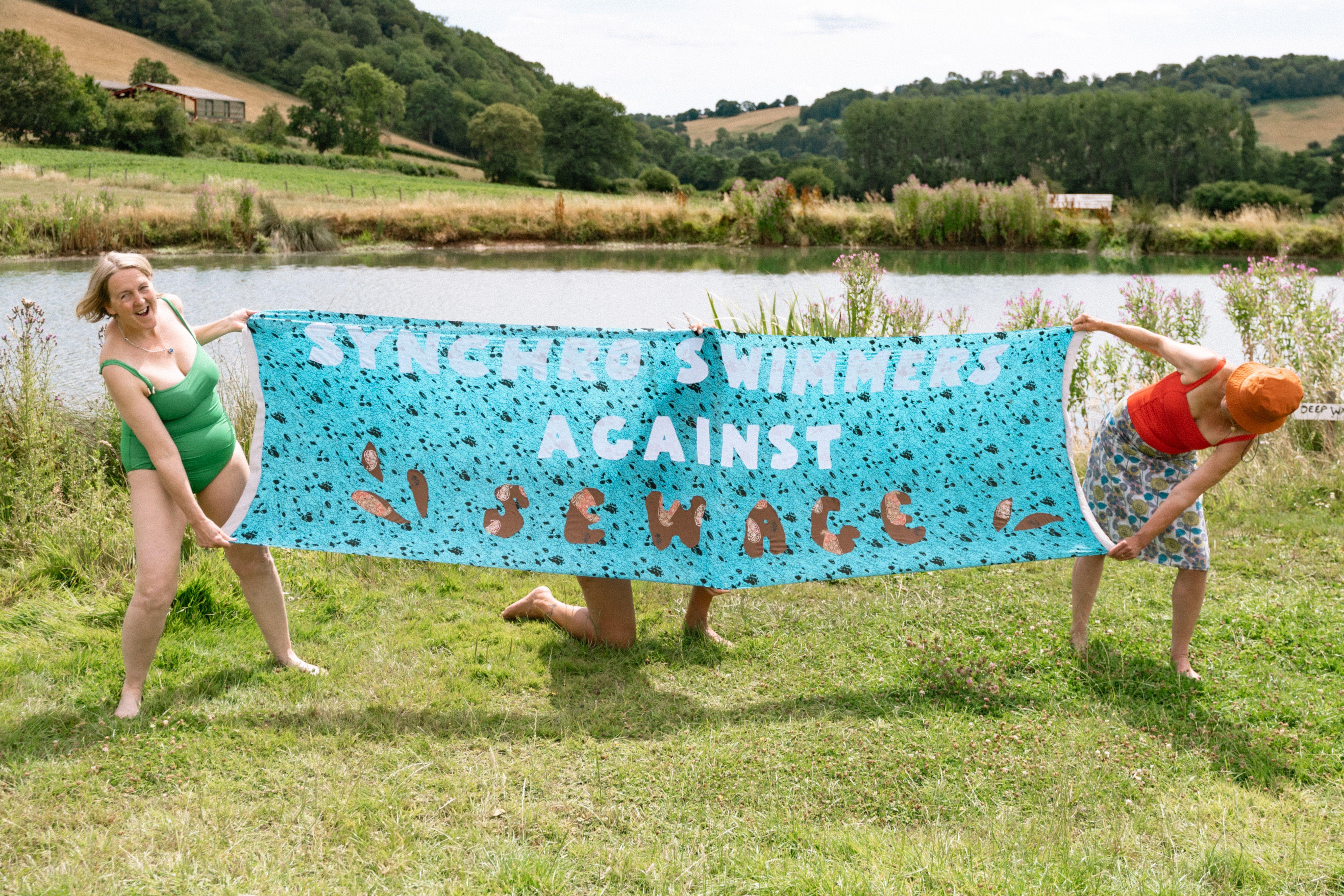 Almost Synchro is a testament to the power of positivity, community and the willingness to give anything a go, but as striking as the hazmat routine undoubtedly is, there’s only so much that one group can do to turn the tide. As Vix said, preserving our natural spaces is about more than stopping people getting sick, it’s about providing a place for nature to flourish and for people to come together to enjoy it. Make use of your wild spaces, love them, fight for them, preserve them and who knows where it could lead. To a synchro swimming group, an al fresco book club, a world record, or just a whole load of knitted tank tops.
