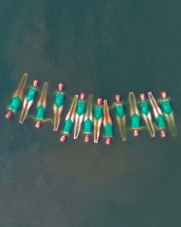Almost Synchro was formed partially by accident. In 2019, a member of Henleaze Lake, near Bristol, suggested that a synchronised swimming routine would be a fitting way to honour the reservoir’s centenary. She sent an email to a long list of contacts, hoping to scrape together a large enough handful to make it work. Within days, more than 80 people had expressed their enthusiasm. During the rigorous practice sessions, a core group formed, for whom this was clearly not going to be a one-off event.