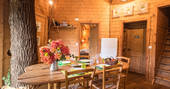 Perhaps best of all is the large terrace overlooking the lake, where you can sit back in the rustic, wooden chairs and enjoy the view and the wildlife around you while you sip a cool drink. You'll be self-catering, but consider the Treehouse Cabin just out of sight through the trees if you'd like your breakfast provided in a hamper for you.