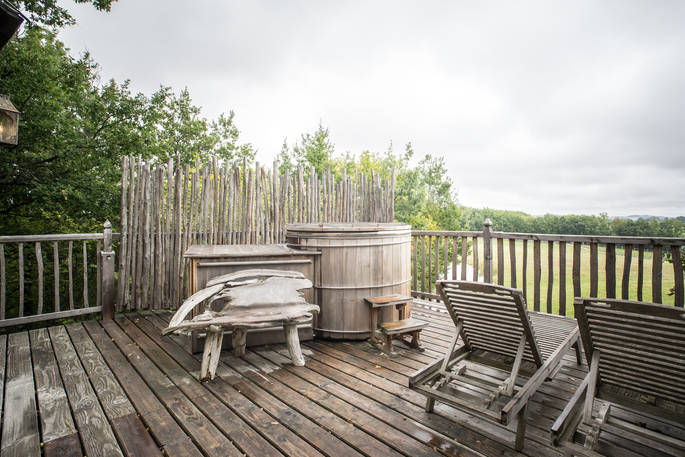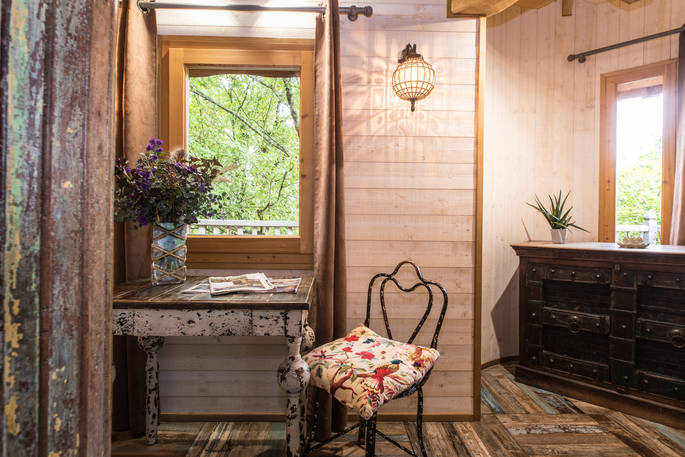 Rémi uses locally-sourced, untreated wood to build his treehouses and cabins and these have a very low carbon footprint - they were put together just down the road at Nid Perché. The insulation is made of wood fibres, and waste water is treated using a microfiltration system. Ecological cleaning products are provided and recycling facilities are available.