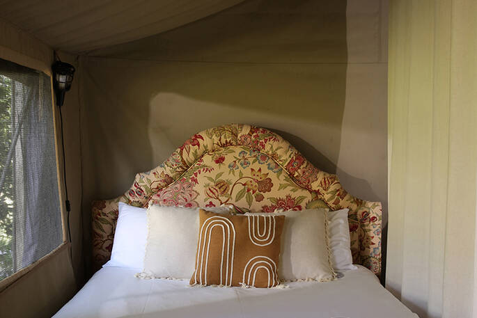 The twenty or so safari lodge tents are authentic South African designs, while the spacious interiors have been decked out in a style that’s closer to home, with vintage fabrics from the château at Bot-Conan Lodge, and light drapes sectioning off the living and sleeping areas. Step outside onto the big raised deck which has as an outdoor kitchen and dining table so you can eat dinner in the evening sun. With so much to do and plenty of space to play, your kids will have made plenty of friends in no time! Hot showers are in two communal shower blocks nearby, newly renovated with grass rooves that blend naturally into the green landscape.