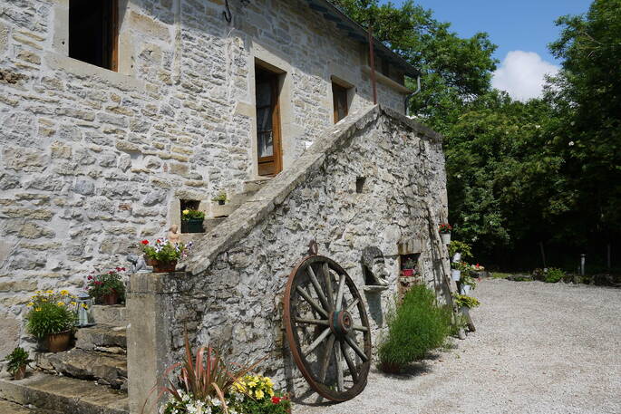 The little stone gite at Coutillard is the classic image of French rural life. Rough stone steps lined with plants lead up to the cool interior, where a few touches of modernity, gas hobs, a shower room, make for an escape that blends comfort and antique charm. Although the gite is connected to the farmhouse, it has a private seating area facing out into the trees and you can lounge by the saltwater pool, shared with guests in the Cabin and the Roulottes. Just a kilometre down a track through the woods is the lovely village of Parisot, so you can wander to the boulangerie or the bar, then head back up the trail to bask in the peace of Coutillard.