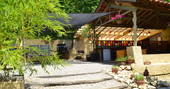 The owners try to encourage as much wildlife as possible at Le Camp, with lots of fruit trees, wildflowers, leaf and log piles, hideyholes and and large areas of the camp left untouched for nature to do its own thing. The lavender outside the kitchen is covered in butterflies all summer long. The natural swimming pond is teeming with frogs, newts, dragonflies and damselflies! Reclaimed materials and solar power are used wherever possible with the grey water from the showerhouse used on pot plants, and all garden and kitchen waste collected to compost.