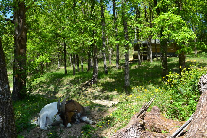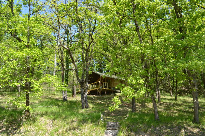 Le Camp is situated in 2.2 hectares of oak woodland which guests are free to roam and explore. There is plenty of wildlife to spot, with regular visits from deer, red squirrels, snakes, lizards, owls, and all sorts of birds and insects. There are wild boar too, but they don’t come into the camp, however you can sometimes hear them running along the other side of the boundary fence.