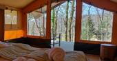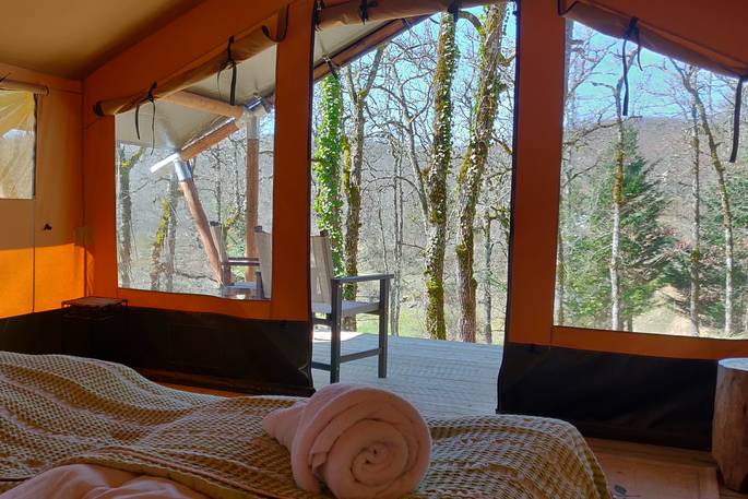 Laze in a glade burrowed into a copse of oaks, you only have to walk a few paces for beautiful views of the Aveyron valley. From stargazing on the terrace to picnicking by the river, there’s much to see and do without breaking camp: duels at table tennis or pond diving in the natural pool, which is plenty big enough to get a few lengths in. There’s space for three in your safari tent, with proper beds all round, crisp white bedding and fluffy towels for wrapping up in once you’ve cooled off in the woodland spa shower. You might even spot deer, owls and other neighbourhood critters from your secluded spot among the trees.