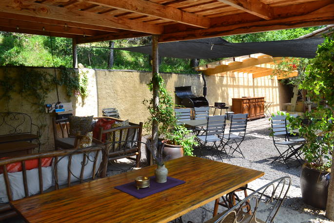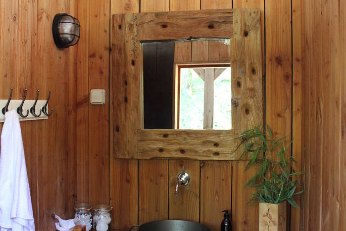 The owners try to encourage as much wildlife as possible at Le Camp, with lots of fruit trees, wildflowers, leaf and log piles, hideyholes and and large areas of the camp left untouched for nature to do its own thing. The lavender outside the kitchen is covered in butterflies all summer long. The natural swimming pond is teeming with frogs, newts, dragonflies and damselflies! Reclaimed materials and solar power are used wherever possible with the grey water from the showerhouse used on pot plants, and all garden and kitchen waste collected to compost.