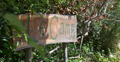 If coming from the south side of the village, turn left at the war memorial (big white cross) and continue up the road and out of the village (turn right if coming from the north side). You will pass a small sign for Le Camp. Keep going up the winding tree-lined road for 2-3 minutes. Le Camp’s main entrance will appear on your right. Guests should pull in here to meet the owners and unload their luggage. The owners will then direct guests to the parking.