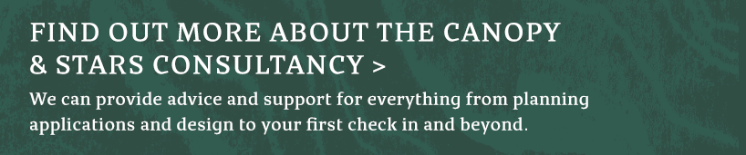 We also offer a bespoke glamping consultancy service for owners looking to start a new business. to your first check in and beyond. In partnership with glamping experts Crown & Canopy, we can provide advice and support for everything from planning applications and design to your first check in and beyond.