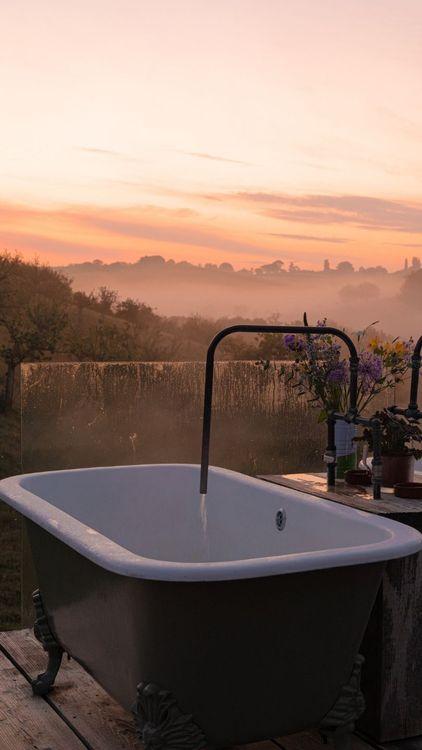 Wondering where all those quirky people were wandering about? It's partly Cleave Treehouse and partly The Old Piggery, both spectacular places in Devon. The former has a bath out on the deck and a sauna and plunge pool at ground level, while the second also has a sauna, and TWO outdoor baths, side by side in front of the most amazing countryside views.