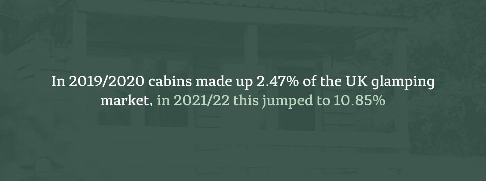 As the glamping market matures and develops, it’s seeing a dramatic shift away from its origins in bell tents, yurts and geodomes to more substantial, year-round spaces. Treehouses have always been the market leader when it comes to glamping revenue but in recent years, cabins have seen a rise in popularity and demand. According to the Crown & Canopy market report, in 2019/2020 cabins made up 2.47% of the UK glamping market, but this rose to 10.85% in 2021/2022. This was comfortably the largest increase of any space type.