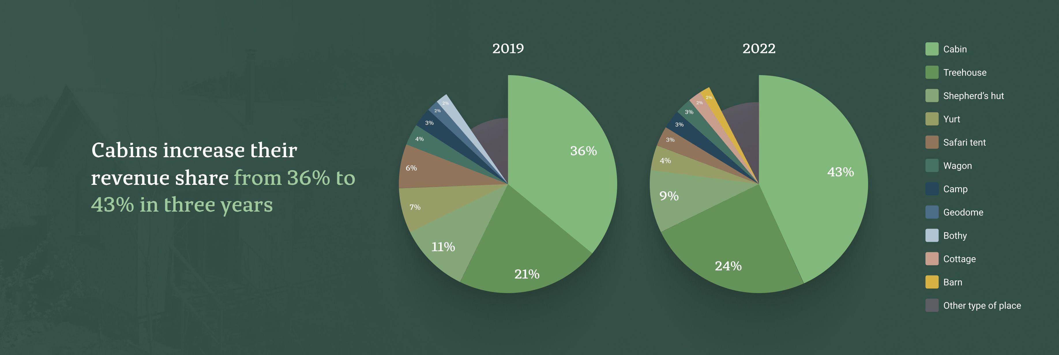 Our own revenue statistics confirm the increased viability of more permanent structures. Only cabins and treehouses exceeded 2021’s pandemic-inflated booking revenue (comparing 2021 full year’s booking revenue to 2022 YTD booking revenue), more than doubling when compared to 2019’s. In 2019, cabins contributed 36% of our revenue, but this has increased to 43% in 2022, with treehouse revenue going from 21% to 24% over the same period. These gains are coming from the downturn in popularity of the more classic glamping structures, especially those constructed in canvas such as safari tents, which have fallen from a revenue share of 6% in 2019 down to only 3% in 2022.