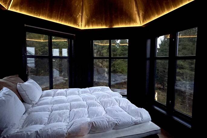 A truly remarkable and beautifully crafted retreat. Surrounded in lush nature and unbeatable views. Wonderful thought has gone into the construction to mix a blend of modern comfort whilst keeping with the ideology of being engrossed in nature. The owner, Knut, is a passionate and exceptionally friendly person who goes above and beyond to make the visit unforgettable.