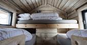 - Three single beds up a small staircase and one double sofa bed in living room area