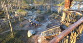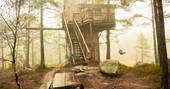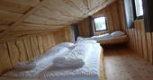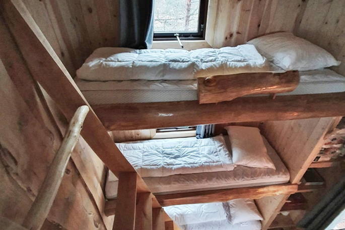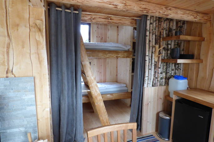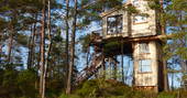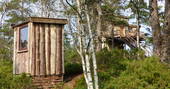 This is wild living at its magical best, where you vanish into a green space on the map and find something incredible waiting for you. The tower is an amazing construction, built entirely from local materials throughout its four floors. The living space and loft occupy the top. You’ll find a triple bunk, one single and one double as well as the lounge and kitchen, with gas hobs, a stove and a hammock where you can lie back and soak up the views of the lake. In the lower levels you’ll find something that isn’t what we’d call a standard feature - the woodworking barn. Here you can try your hand at crafting anything from a birdbox to a boat and, when you fancy a break, just jump out the window - there’s a net strung between the trees to catch you. Down on the ground, however you get there, you’ll find the compost loo and outdoor rainwater shower. These, along with flickering candles being your only lighting, give you a real sense of being far, far away from modern life.