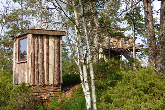 - Compost toilet in outhouse next to treehouse, 50 metres away