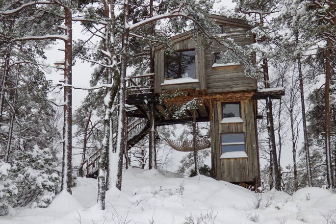 The nearest airport is Kristiansand Airport, Kjevik which is 74 kilometres away. 1 hour and 15 minutes by car.Other airports are Stavanger (190 km / 3 hour drive) and Oslo (430 km / 6 hour drive.) Once at Oslo airport, you can catch a quick 45 minute flight to Kristiansand KRS airport and then either hire a car or transfer to get to the treehouse.Transfer from the Kristiansand airport one way - €105 per car (max 4 persons). Round trip transfer available for €210.