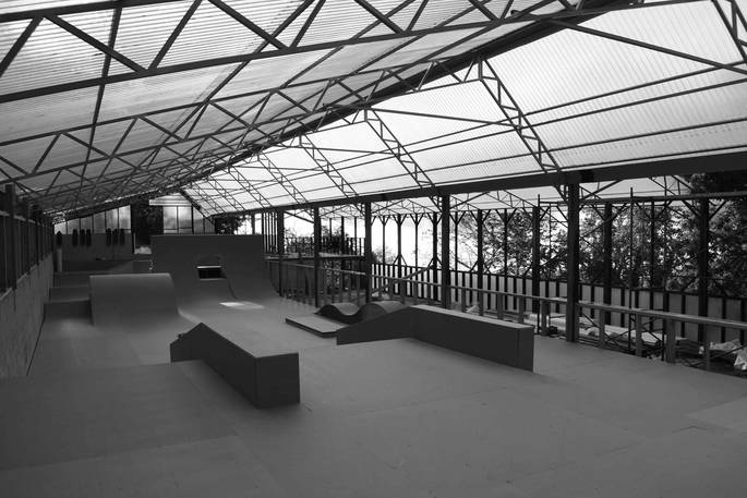 - Covered 600m2 skatepark. It has double micro ramp, a mini ramp, and a 130m2 bowl and vert which is in construction. The skatepark is free to use for guests!