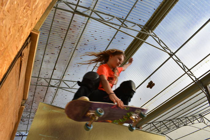 - There is a covered 600m2 skatepark. It has double micro ramp, a mini ramp, and a 130m2 bowl and vert which is in construction. The skatepark is free to use for guests!