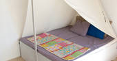 Kids can choose to sleep inside the lodge in a double canopied sofa-bed or in double tipi pitched outside (no taller than 160 cm) - linen provided