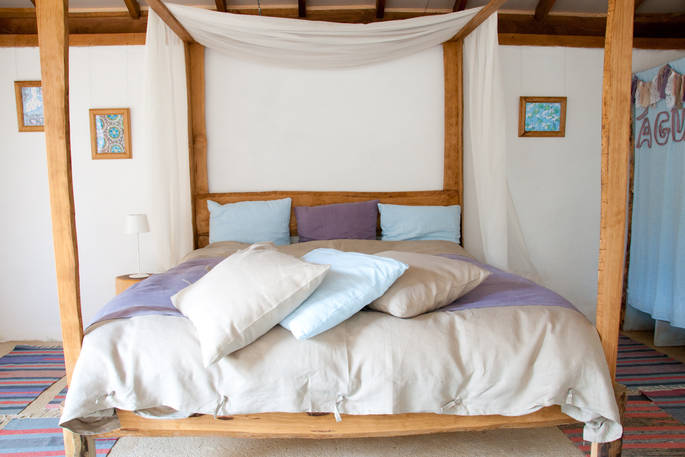 Na-Be is set in an incredibly peaceful location in the hills about an hours drive from Porto airport. My partner and I live in London and it was so lovely to sleep with sounds of nature and wake up to the chorus of birds! Joelle and Dirk have created a magical place to stay. The accommodation is the perfect combination of comfortable and rustic with handcrafted four poster beds, comfortable sheets and pillows (I'm quite fussy and they got it right) and stunning views. I also loved the pool, they have a natural filtration system using plants and salts (I think), which means no chlorine. The local area is quiet, there are some small towns nearby that are very pretty and nice to have meals out and walk around exploring. There are also some nice walks near the property which my partner and I enjoyed. Joelle also can let you know about local hikes. Joelle also offers massages in a room with beautiful panoramic view - I had a massage at the end of our holiday and it was lovely, really regretted not having more while I was there! Dirk also cooks impressive three course dinners a few nights a week - not to be missed out on!!