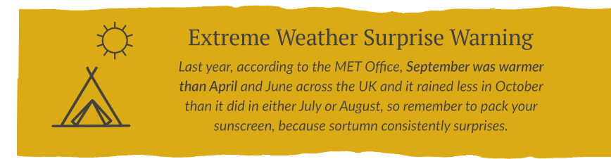 Sortumn is that glorious period when sunny days meet campfire nights. There’s still summer warmth but the crowds have ebbed away and the evenings draw in early to give you just a little more time for hot tub stargazing and crackling campfires. It’s our favourite time to go away, so we put together a little sort-of-seasonal guide to the best season for getting outdoors.