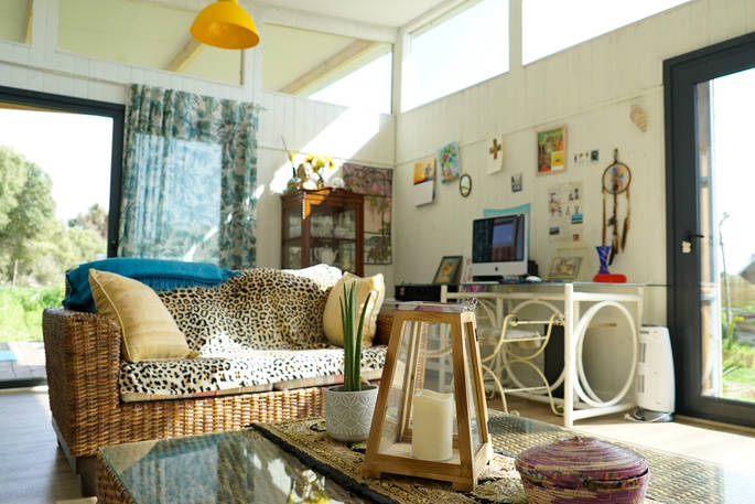 We swung by to stay the night at this one, whilst on holiday in area, and I was very happy indeed to break holiday to do so! This is a super comfortable, homely, light and stylish cabin. Nika knows the area well and had loads of great ideas for what to do, where to go and what to eat! She's created something that really fits her creative Californian inspired style and background. We loved hanging out on the beautiful beach. El Palmar is a top spot for surfing and great for kids too. This is a wonderful and unusual option among all the other accommodation at trendy El Palmar, to slow down and relax, but still be just minutes walk from all the action and beach.