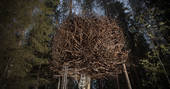 The nest is accessed via an electronic stepladder that descends and retracts via a keypad strapped on to one of the neighbouring trees. Inside, it's feathered with two bedrooms, a loo, living area, underfloor heating, designer kettle, stylish woollen rugs.