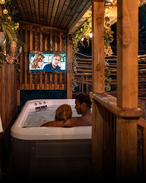 Some spaces were made for two. Watch a movie together at the outdoor cinema, sit by the chiminea under the tree canopy or melt together in the hot tub. When it gets cooler, retire inside, where nature gives way to Moroccan-themed extravagance – and snuggle by wood burner crackle.